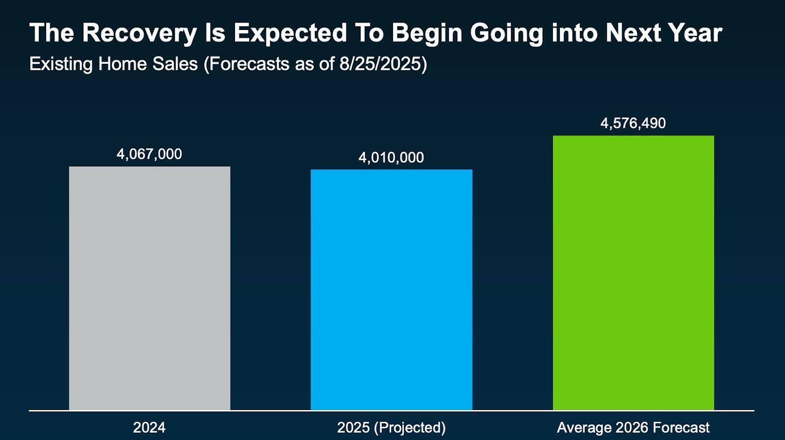 The national housing recovery is expected to be certain, but slow, more like the long climb after 2008 than the quick rebound after the COVID boom. After the Great Recession, prices didn’t hit bottom until 2012 and didn’t pass their old peak until 2016—that kind of healing takes time. COVID was different: rock-bottom rates and remote work sent demand soaring and inventory to record lows, then higher rates cooled things back down. Looking ahead, think “thaw,” not “surge.” Lower mortgage rates are nudging more buyers and refinancers back in, but 2025 sales should be roughly flat before improving. On the supply side, inventory is inching up as builders finish more homes. Taken together, 2025–2026 should bring a steadier market as rates ease and listings normalize—more slow taxi than rocket launch. (Fannie Mae, CME Group, FRED, St. Louis Fed, KCM)