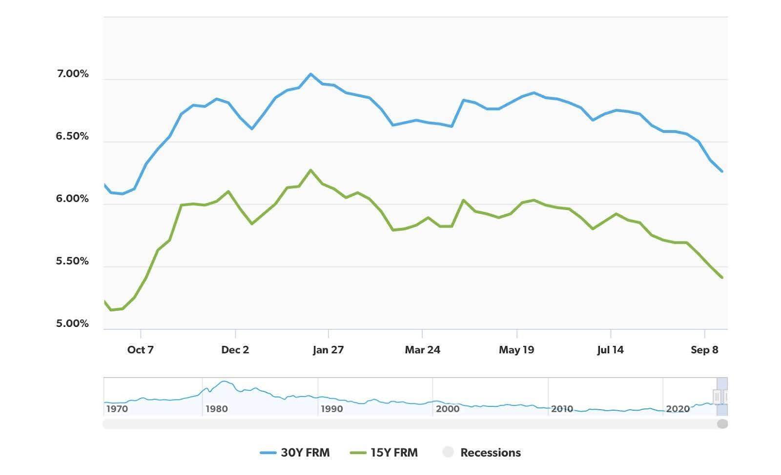 These charts show U.S. mortgage rate trends through September 18 and the probability for further Fed rate cuts. The 30-year fixed-rate mortgage (30Y FRM) sits at 6.26%, while the 15-year fixed-rate mortgage (15Y FRM) is at 5.41%. The Federal Reserve cut its benchmark rate by 25 basis points on September 17, the first reduction since 2024. While the Fed doesn’t set mortgage rates, the cut, combined with a sliding 10-year Treasury yield, has helped push mortgage rates to their lowest level in nearly three years. For buyers and owners, this creates a timely opportunity to lock in lower borrowing costs or consider refinancing before market conditions shift again. (FreddieMac, CME Group, Keeping Current Matters)